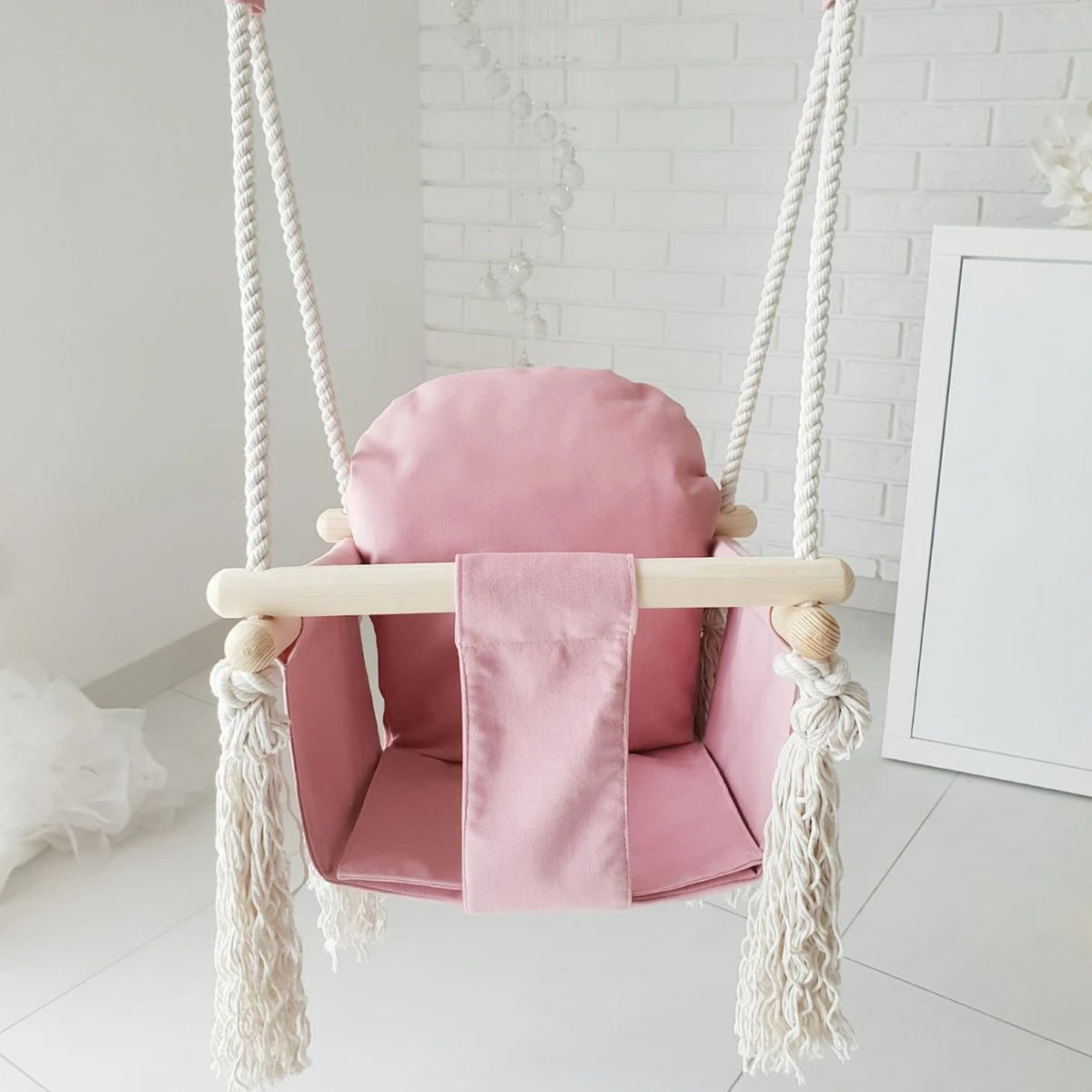 Skład: 100% certyfikowana, miękka tkanina tapicerska, drewno sosnowe, lina bawełniana