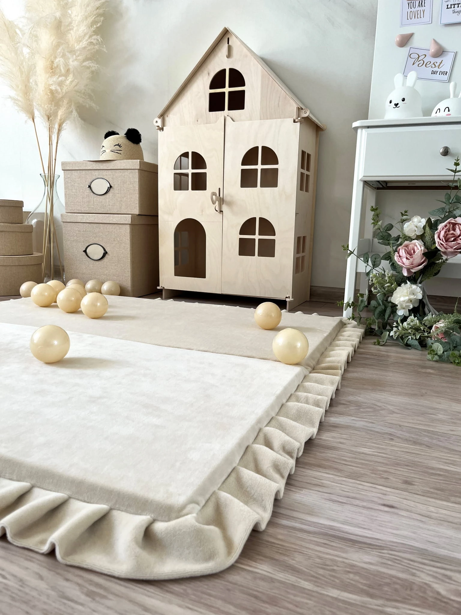 Mata do zabawy VELVET kremowa kwadrat 105x105