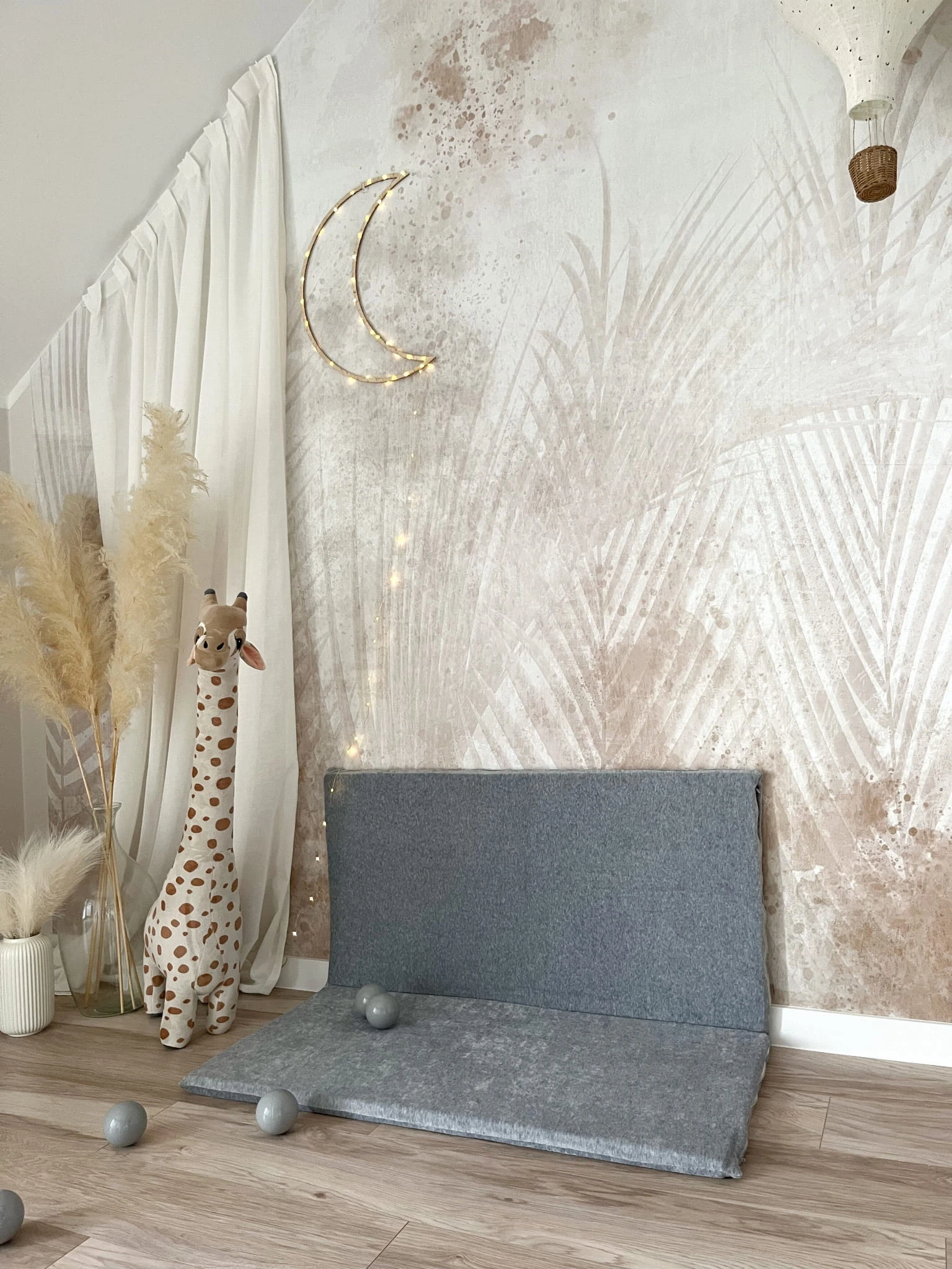 Mata może leżeć płasko na ziemi lub można ją zgiąć na pół i oprzeć o ścianę.
