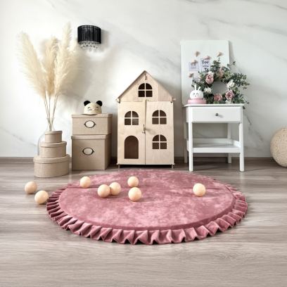 Mata do zabawy XXL VELVET brudny róż okrągła 125x125
