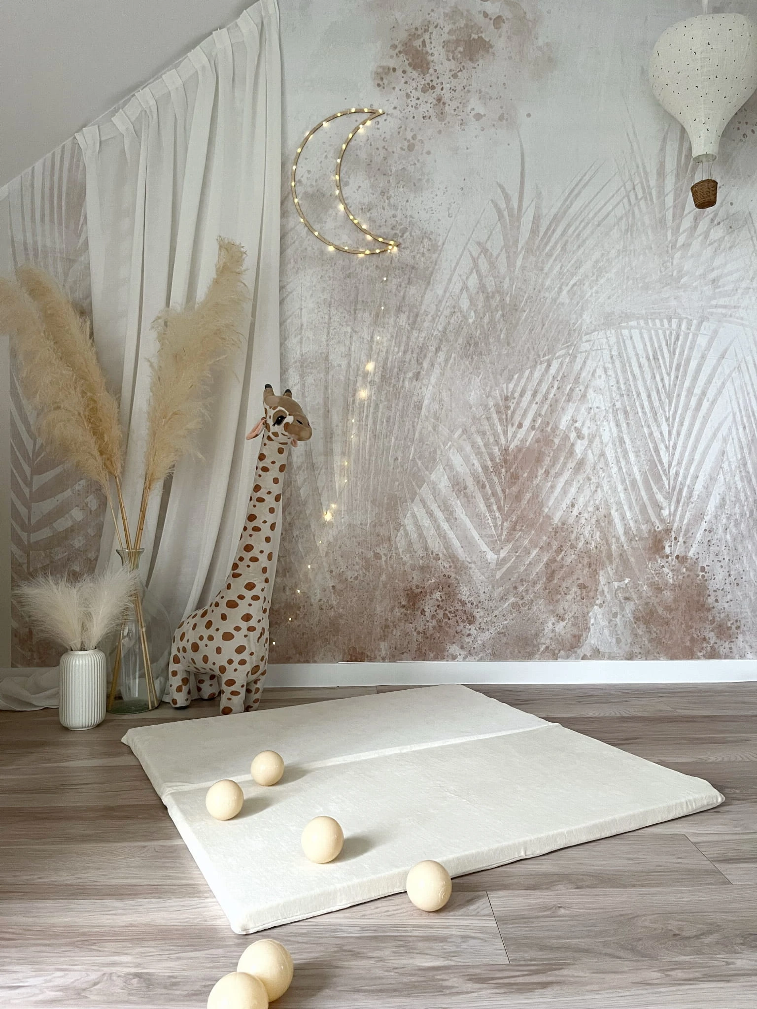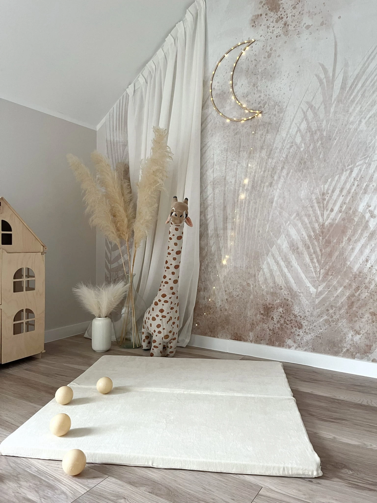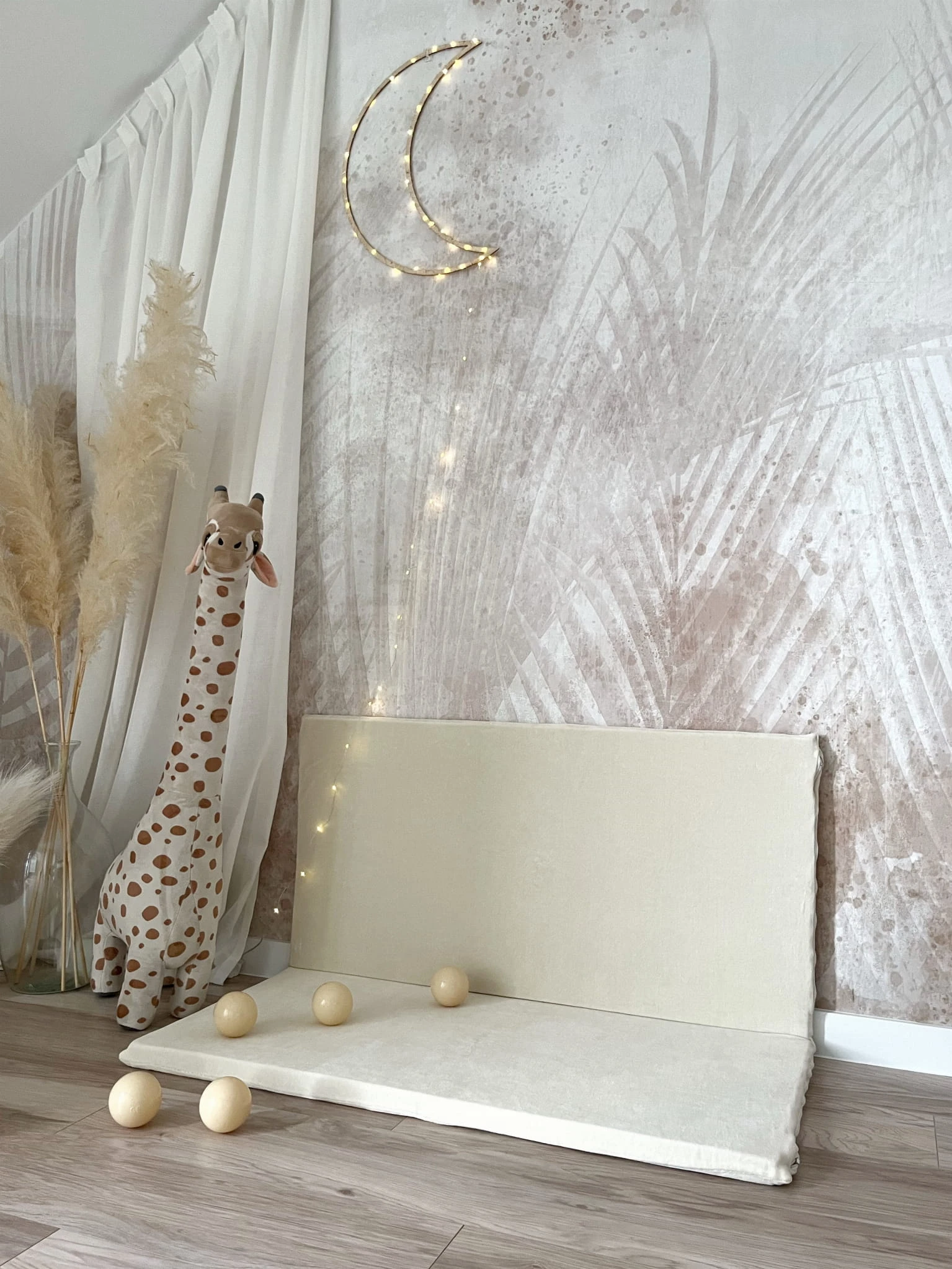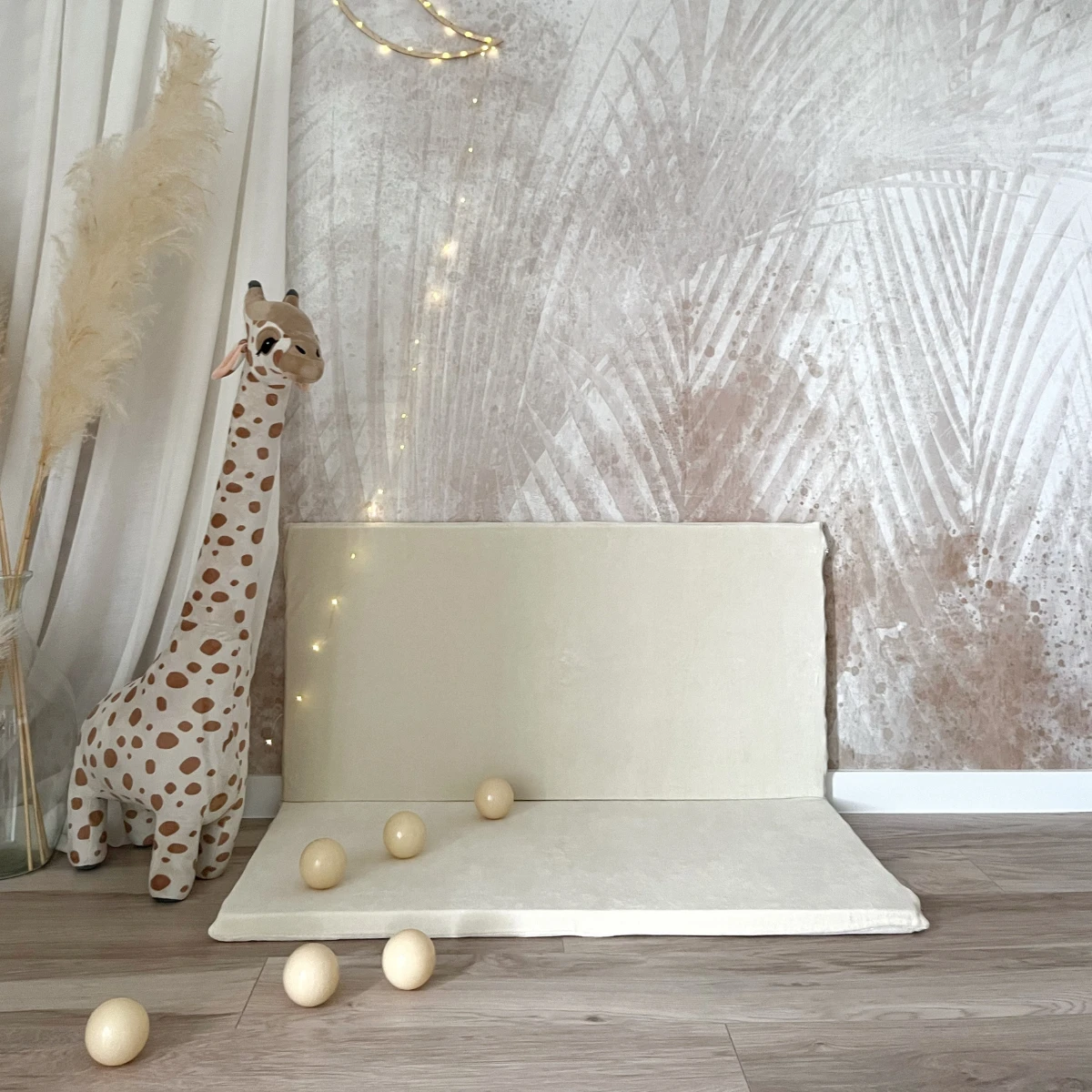 Mata może leżeć płasko na ziemi lub można ją zgiąć na pół i oprzeć o ścianę.