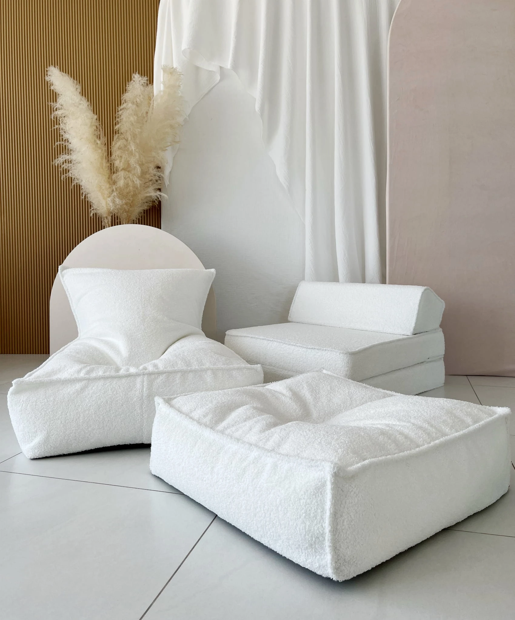 - Pufa worek dla dziecka BOUCLE - BIAŁA