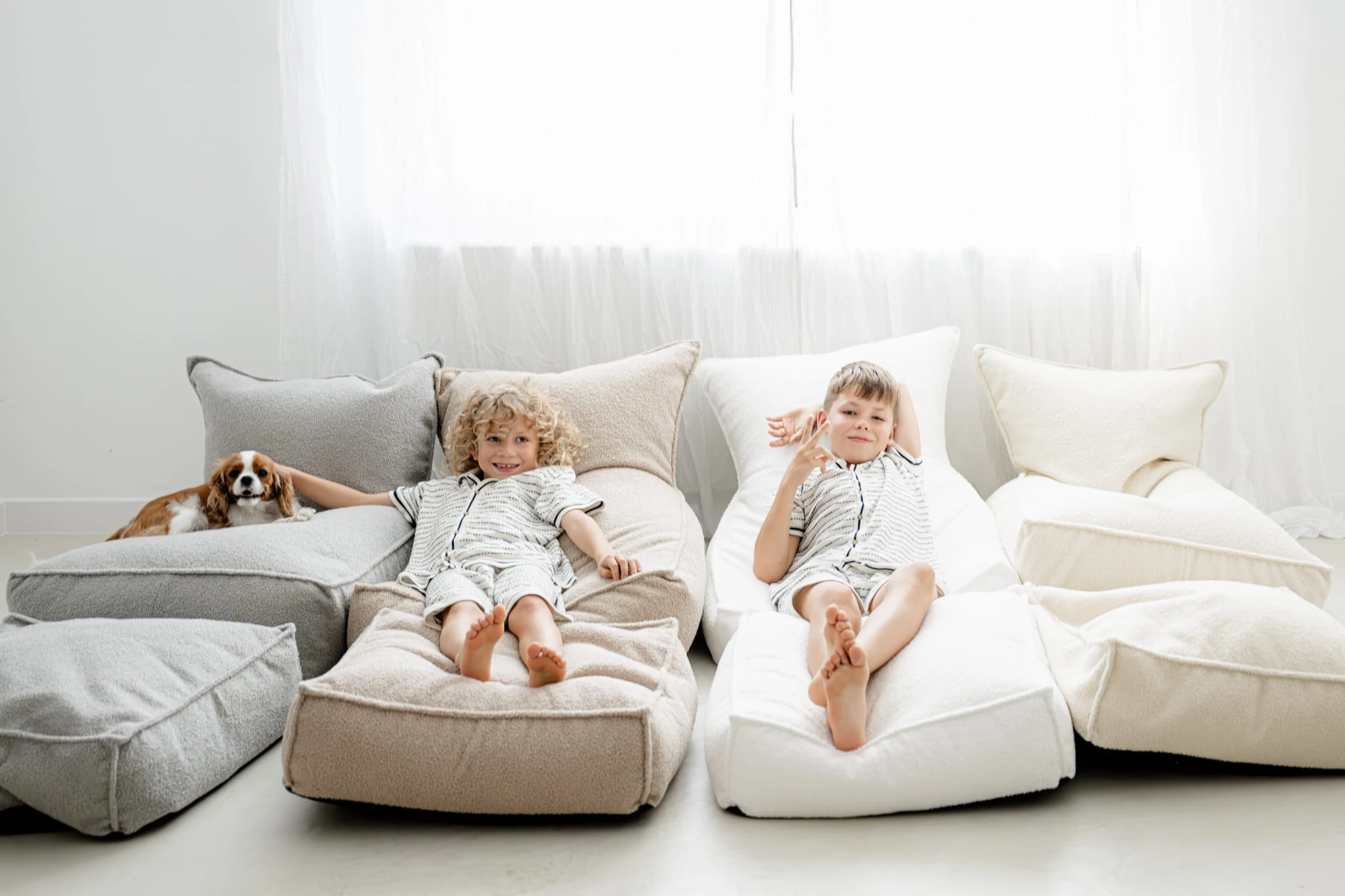 Oprócz wspomnianego komfortu podążamy za obowiązującymi trendami i wiemy, że materiał boucle to teraz hit. Dlatego wiedzieliśmy, że musimy wprowadzić go do naszej oferty :) Do naszego salonu i do pokoju dzieci Pufy worek wpasowały się idealnie - mamy dzieję, że będzie też tak u Ciebie!