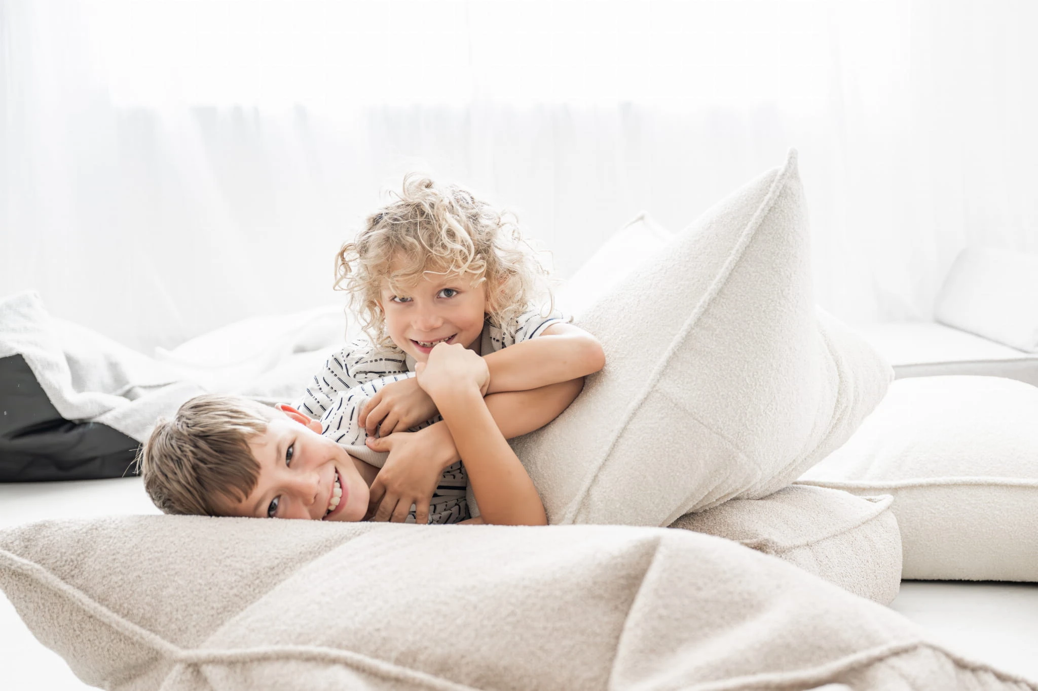 Pufy zostały tak zaprojektowane, aby komfort ich użytkowania był jak najlepszy. Wydłużyliśmy nieco siedzisko, aby dziecko mogło spokojnie wyprostować nóżki, a oparcie możesz samodzielnie kształtować poprzez przesuwanie granulatu - do pozycji bardziej półleżącej lub stojącej. Mamy nadzieję, że miło zaskoczy Cię wygodna naszych puf.