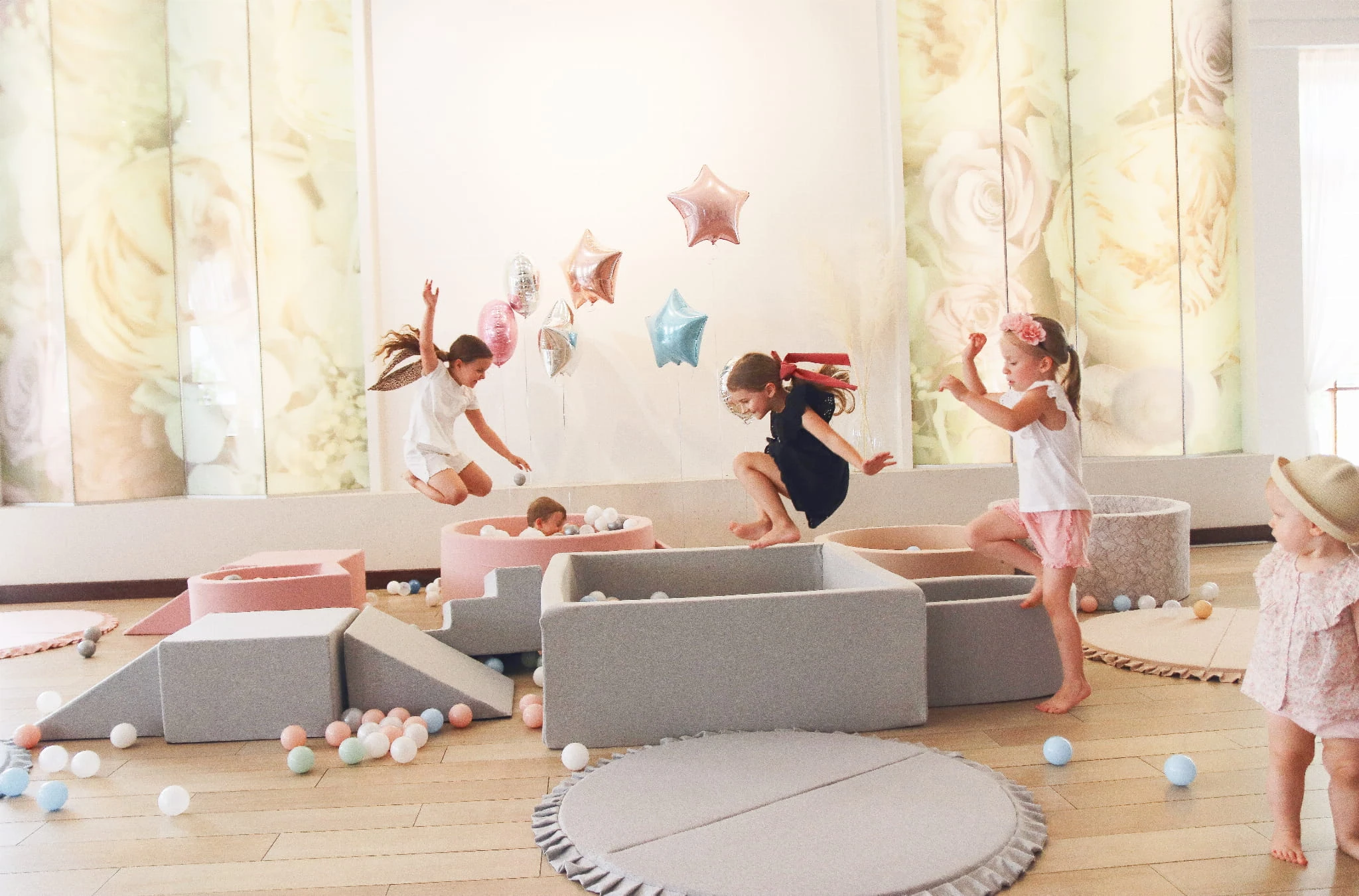 Stwórz zestaw: Kolekcja PLUSZ obejmuje baseny z kulkami i maty do zabawy: Gniazdko i Chmurka.