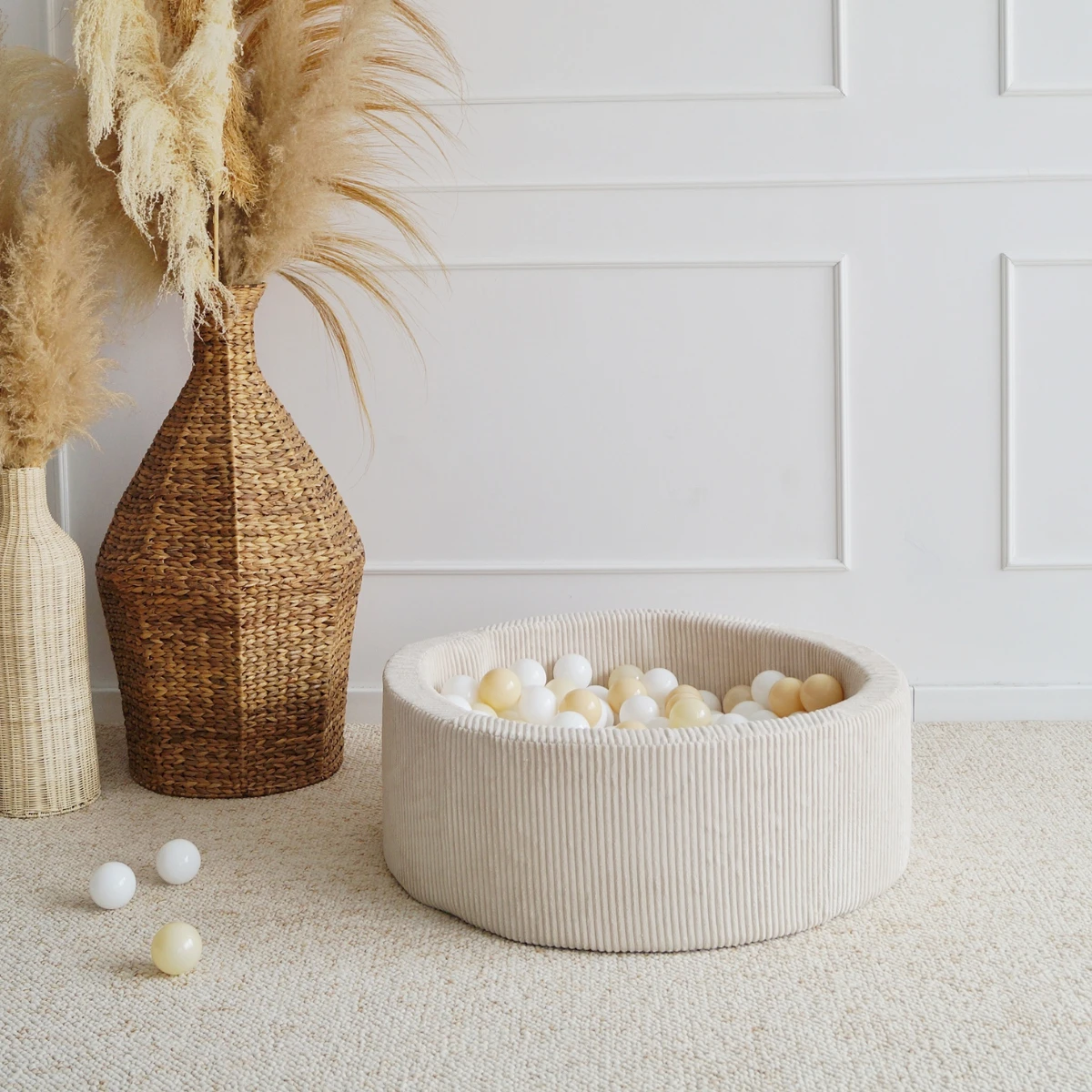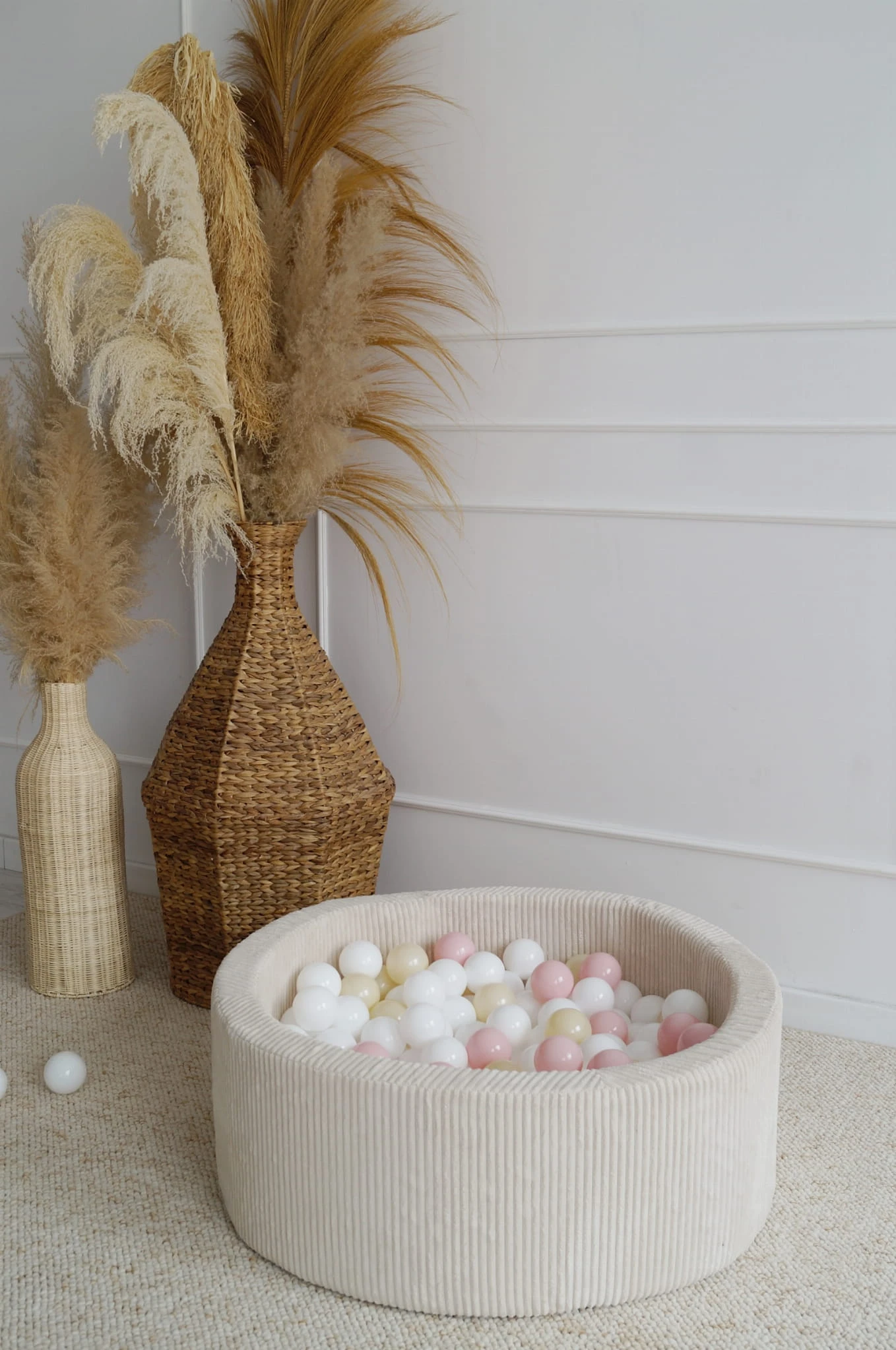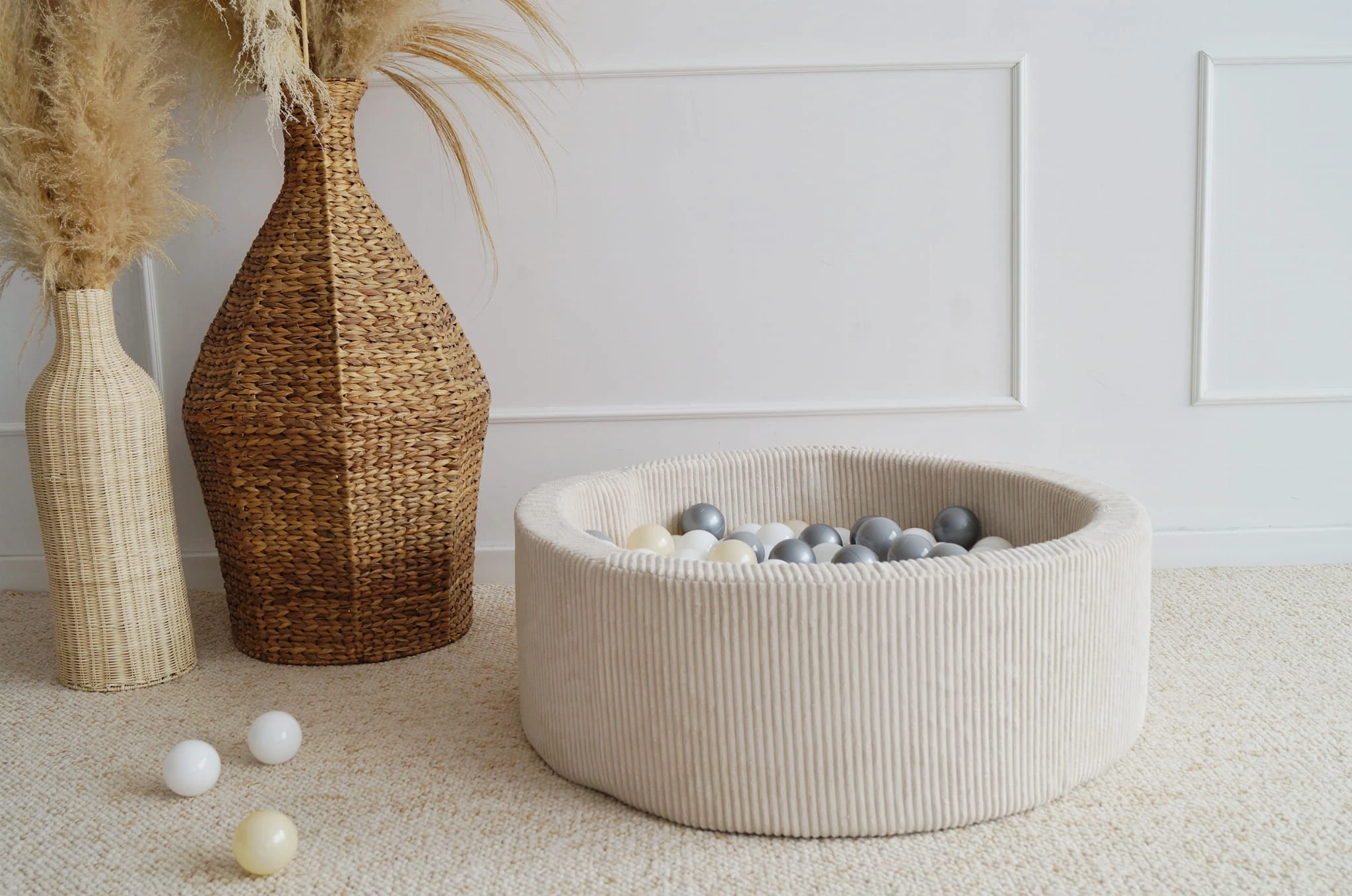 Stwórz bezpieczne i stylowe miejsce do zabawy dla swojego dziecka! Ten suchy basen wykonany z miękkiego, przyjemnego w dotyku sztruksu to nie tylko źródło radości, ale również piękny element wystroju wnętrza. Idealny do pokoju dziecięcego, salonu czy kącika zabaw – zachwyca designem i gwarantuje godziny beztroskiej rozrywki.