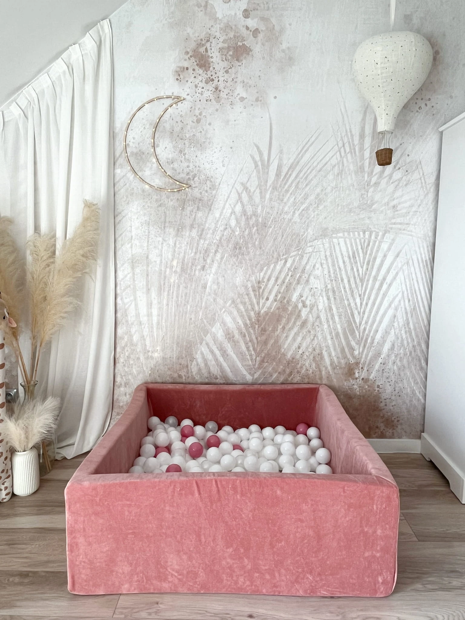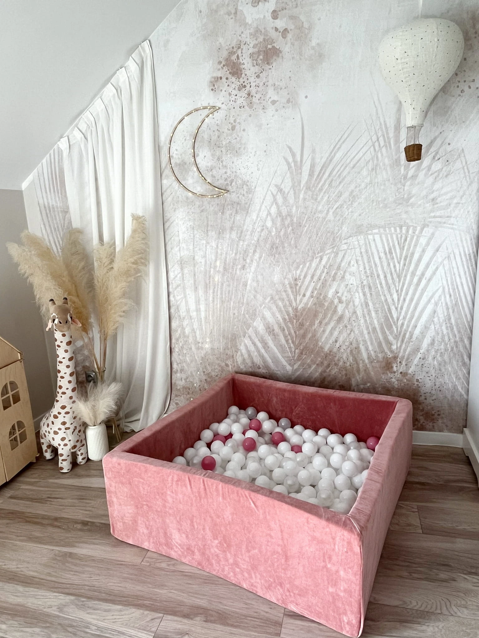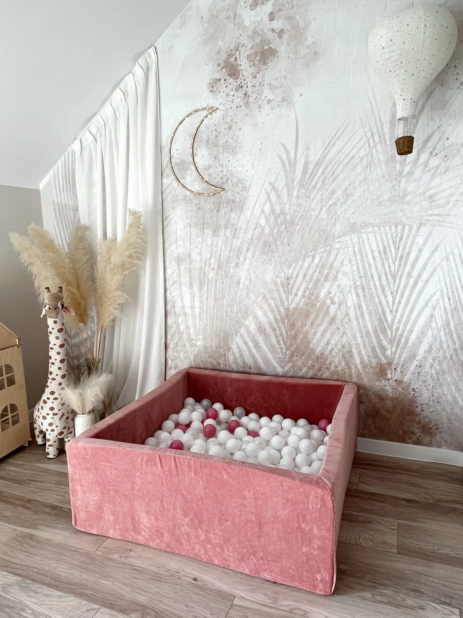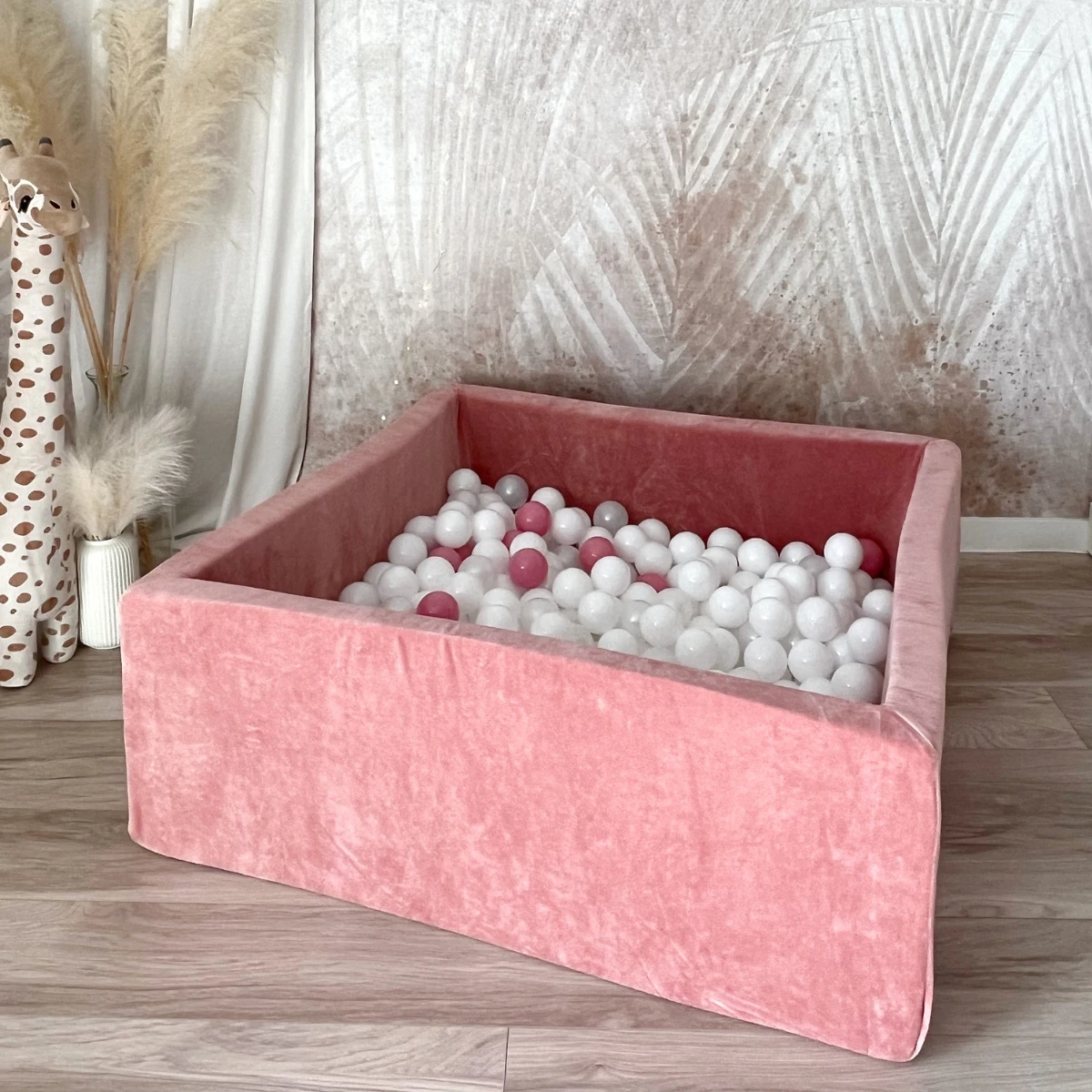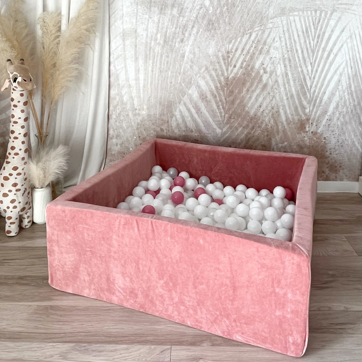 Stylowy i bezpieczny basenik dla dzieci, który zapewnia świetną zabawę i wspiera rozwój motoryczny. Wykonany z miękkiego, przyjemnego w dotyku velvetu, idealnie pasuje do nowoczesnych wnętrz.