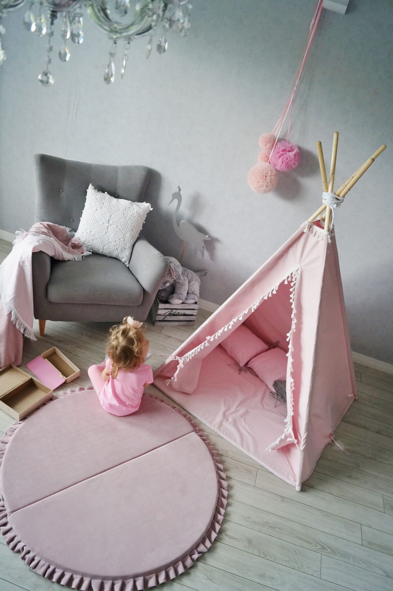Tipi dla dziecka z poduszkami Różowe